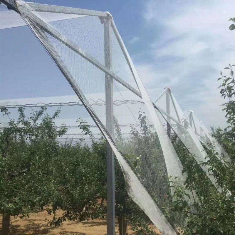 వడగళ్ళు నెట్ కవర్ సాగు అనేది ఉత్పత్తిని పెంచడానికి ఒక ఆచరణాత్మకమైన మరియు పర్యావరణ అనుకూలమైన కొత్త వ్యవసాయ సాంకేతికత. కృత్రిమ ఐసోలేషన్ అవరోధాన్ని నిర్మించడానికి ట్రేల్లిస్ను కప్పడం ద్వారా, వడగళ్ళు నెట్ నుండి మినహాయించబడతాయి, అన్ని రకాల వడగళ్ళు, మంచు, వర్షం మరియు మంచును సమర్థవంతంగా నియంత్రిస్తాయి మరియు వాతావరణం వల్ల కలిగే హానిని నివారిస్తుంది.